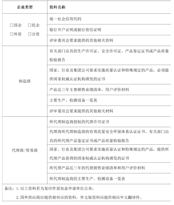 4.對(duì)于提供審核資料弄虛作假、被國(guó)家相關(guān)部門(mén)、同行業(yè)央企納入黑名單或列為不誠(chéng)信人的企業(yè)及企業(yè)法人不予準(zhǔn)入。