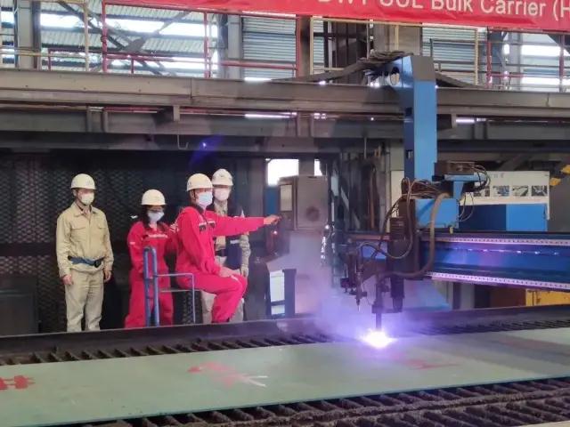 ????為按期實現建造目標,中船澄西成立了22號8.2萬噸船建造臨時黨支部和臨時團支部,制定黨建帶團建專項攻堅計劃,發揮黨員和青年團員旗幟作用。 在船臺搭載過程中,中船澄西克服疫情期間關鍵船用設備到貨晚、人員到位少等困難,齊心協力啟動建造“快進鍵”,不斷提高生產效率。