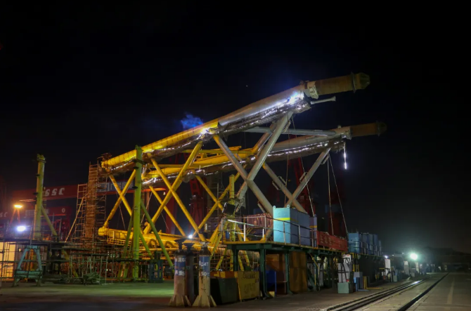 吸力筒導管架風機基礎交付后將用于廣東省陽江市陽西縣沙扒灣300兆瓦海上風電項目。