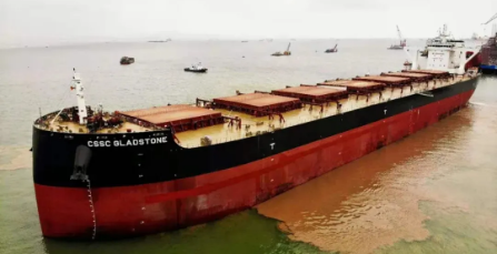 3月29日,中國船舶集團(tuán)旗下上海船院負(fù)責(zé)詳細(xì)設(shè)計、黃埔文沖建造的第4艘12萬噸散貨船“CSSC GLADSTONE”號交付。