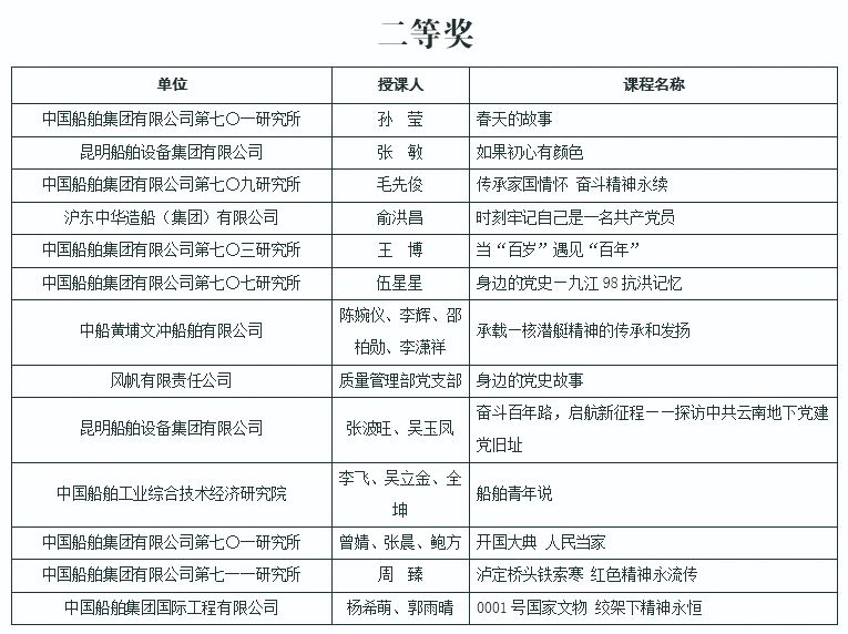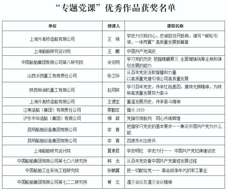 為慶祝中國共產(chǎn)黨成立100周年,深入推進(jìn)黨史學(xué)習(xí)教育,由中國船舶集團(tuán)黨群工作部主辦,中國船舶集團(tuán)黨校承辦的慶祝中國共產(chǎn)黨成立100周年黨課評選活動結(jié)果今天正式揭曉。