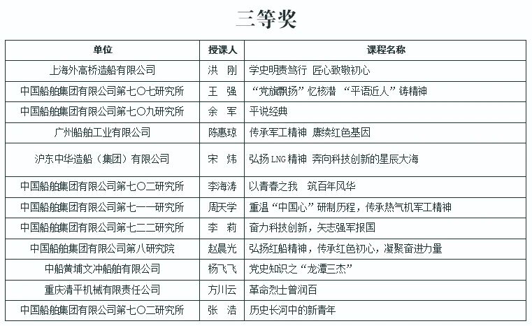 除一等獎的“微黨課”作品,其他獲評優(yōu)秀的“微黨課”和專題黨課可以登錄集團(tuán)公司黨校“中船e學(xué)”平臺首頁“中國船舶集團(tuán)有限公司黨課評選優(yōu)秀作品展示”進(jìn)行觀看。
